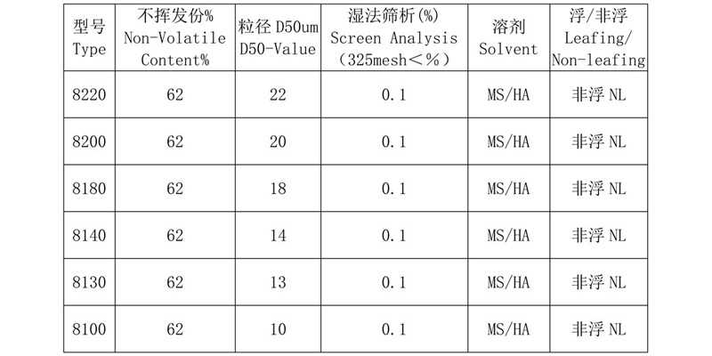 該產(chǎn)品具有非凡的遮蓋力,優(yōu)良的白度和中等的閃亮特征,能為用戶提供滿意的著色力和優(yōu)雅的金屬效果。適用于溶劑系統(tǒng)。廣泛用于普通的工業(yè)漆、卷材涂料、船舶漆、防銹涂料。